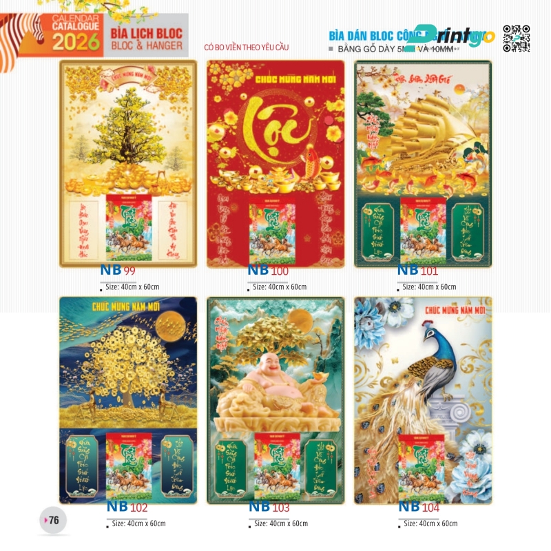 Kho mẫu lịch phong phú: Hàng trăm mẫu lịch Tết sang trọng, đa dạng kích thước và chủ đề, đáp ứng linh hoạt nhu cầu.