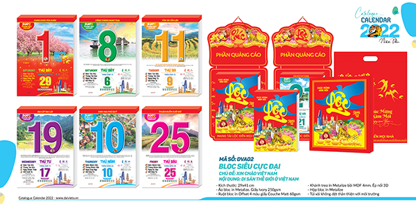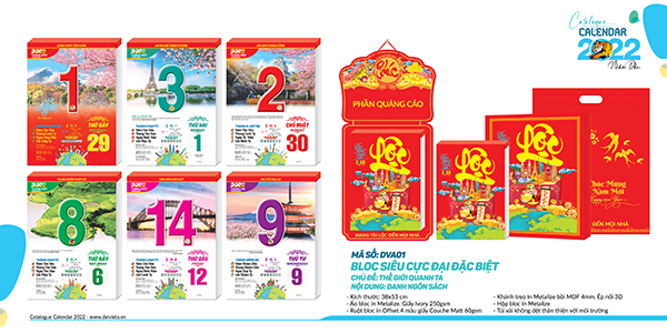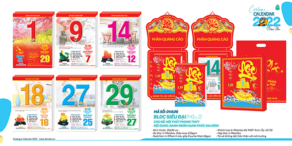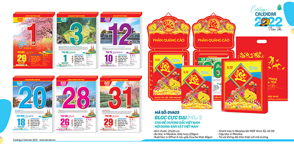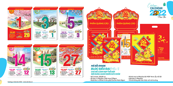 Từ lâu, lịch tết đã trở thành một nét thuần phong mỹ tục trong văn hóa của người Việt. In lịch tết vào dịp cuối năm cũng trở thành một phần không thể thiếu trong các gia đình Việt. Trong dịp tết này, in lịch tết Đại Việt Á 2022 sẽ mang đến cho bạn những ấn phẩm lịch tết độc đáo, tạo nên một cái tết khó quên.