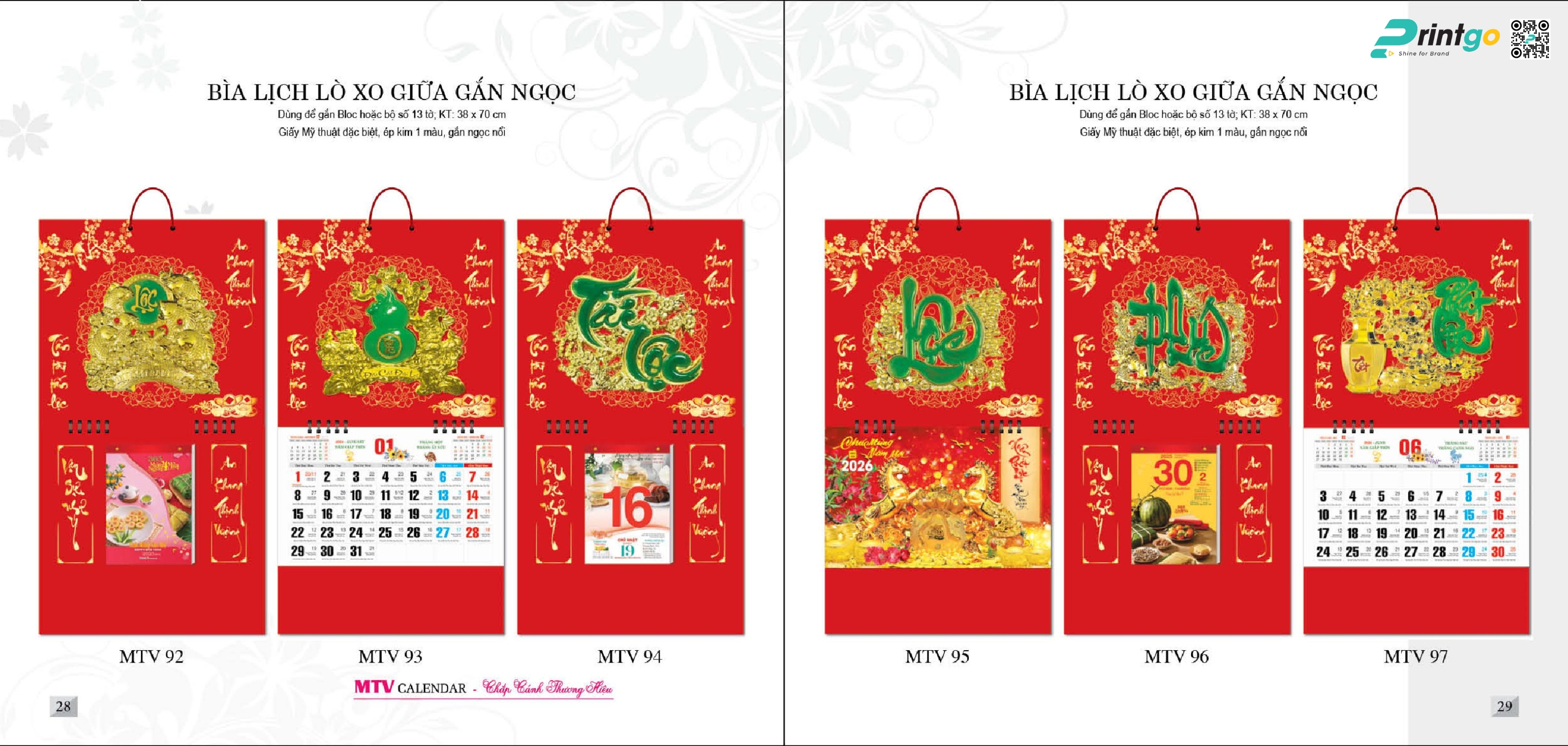 Bìa lịch với thiết kế tinh tế và chất liệu cao cấp sẽ nâng cao giá trị của lịch, đồng thời thể hiện gu thẩm mỹ của người dùng, góp phần tạo nên một bầu không khí ấm cúng và trang nhã trong mọi gia đình hay văn phòng. Trong mùa xuân năm nay, in lịch bloc của Mỹ Thuật Việt mang đến những mẫu bìa lịch vô cùng đa dạng như bìa khung ngọc đại mạ vàng, khung ngọc trung, bìa lịch lò xo giữa gắn ngọc, bìa lịch lò xo giữa nổi 3D,.. giúp quý khách có thể dễ dàng lựa chọn loại bìa phù hợp với kiểu dáng và sở thích.