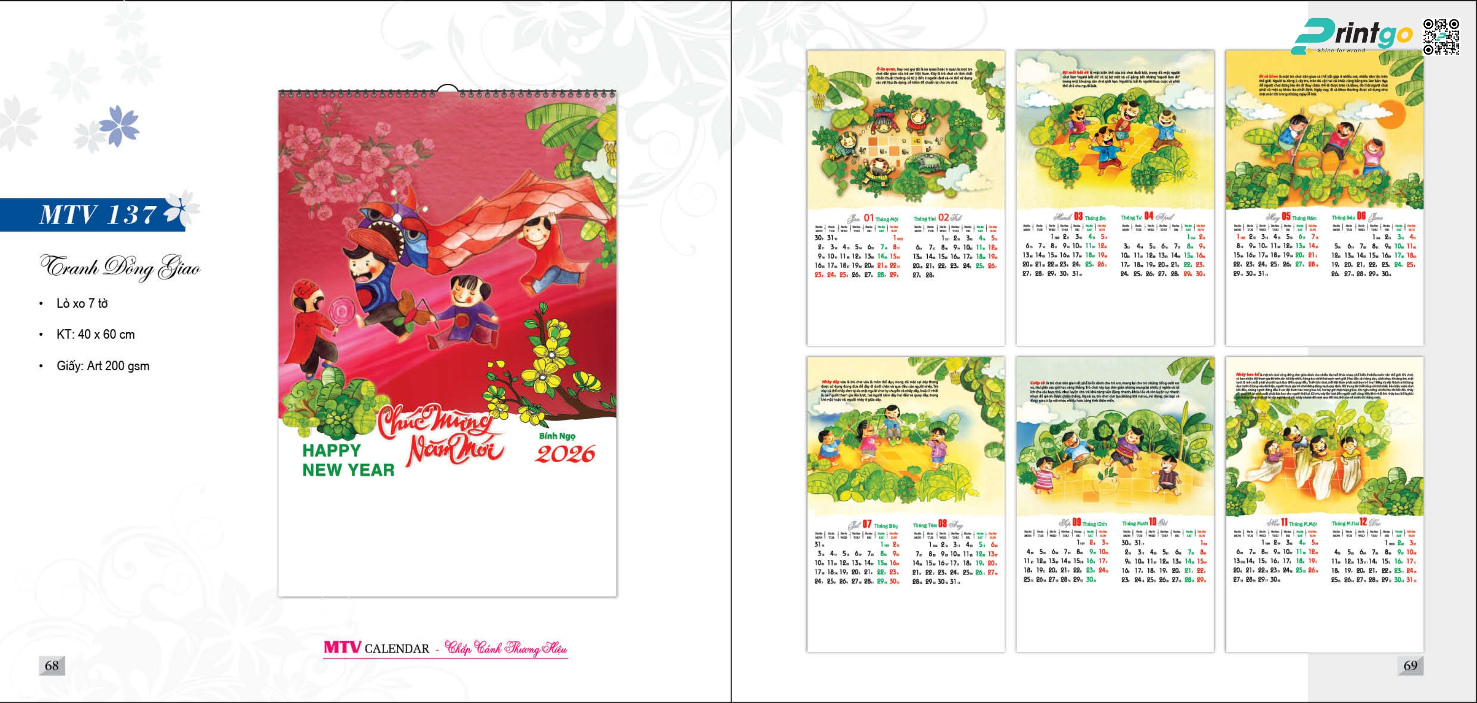 Mỗi độ xuân về, việc tặng lịch cho khách hàng, đối tác, nhân viên, bạn bè và người thân không chỉ là món quà tinh thần ý nghĩa, mà còn là nét đẹp văn hóa truyền thống của người Việt, thể hiện sự quan tâm, trân trọng và gắn kết giữa người với người. Ngoài ra, cuốn lịch tết còn là công cụ truyền thông hiệu quả giúp doanh nghiệp quảng bá thương hiệu và sản phẩm, ghi dấu ấn mạnh mẽ trong tâm trí khách hàng. Để chào đón xuân Bính Ngọ 2026, Printgo xin giới thiệu tới quý khách bộ sưu tập lịch Tết Mỹ Thuật Việt mới nhất, với thiết kế lịch tết 2026 bắt mắt cùng thông điệp sâu sắc, hứa hẹn sẽ là sự lựa chọn hoàn hảo cho mùa xuân năm nay.
