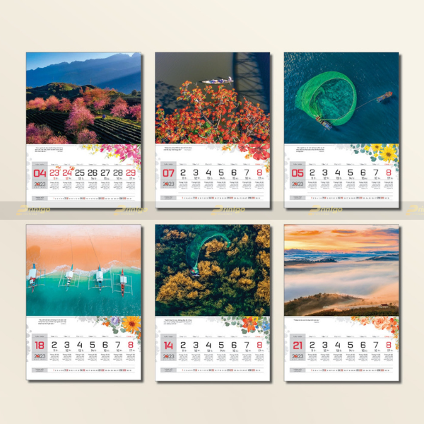 Bộ lịch LT-BS0323 là sự kết hợp từ 52 bức tranh có màu sắc tươi sáng, tái hiện lại những khung cảnh đẹp mê lòng người xem của đất nước hình chữ S. 52 bức tranh này tương ứng với 52 tuần trong năm, sẽ là một nguồn năng lượng tích cực giúp một tuần làm việc của bạn thêm năng động, sáng tạo.