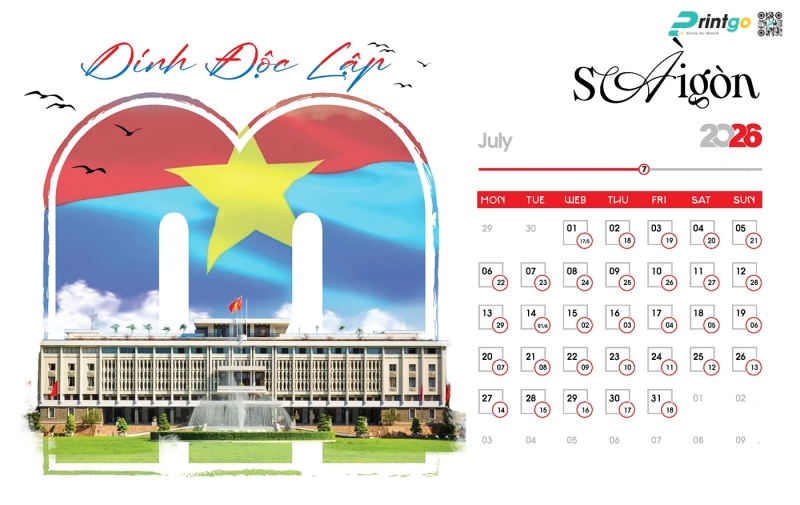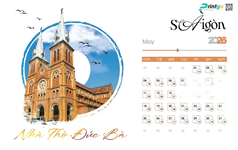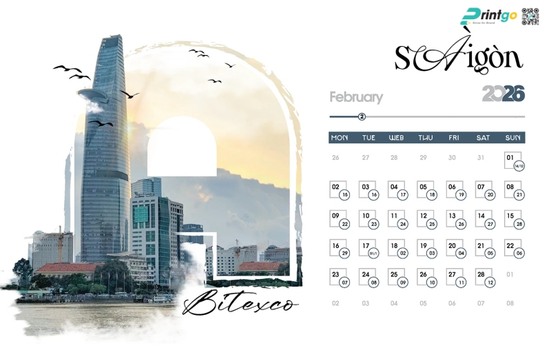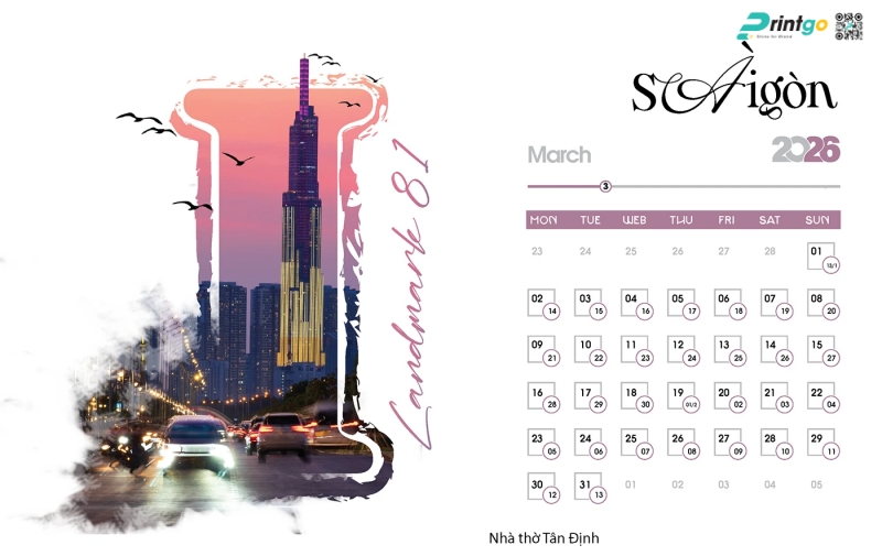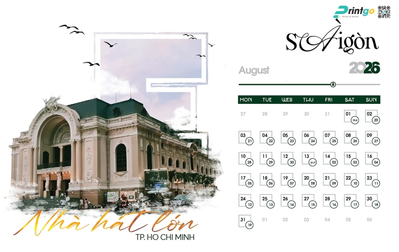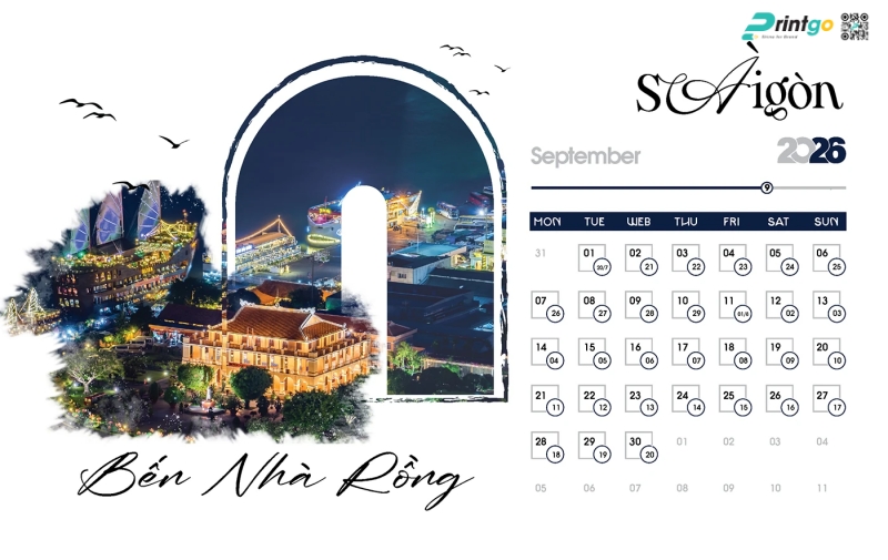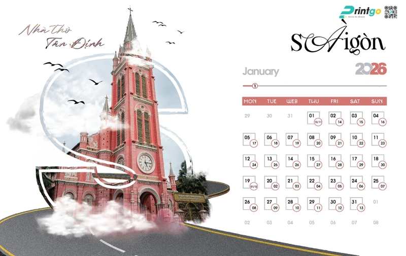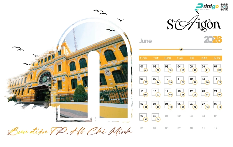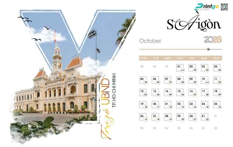 Bước vào mùa in lịch Tết 2026, xu hướng thiết kế lịch để bàn chủ đề thành phố đang được nhiều doanh nghiệp lựa chọn như một cách kể câu chuyện thương hiệu đầy cảm xúc. Nổi bật trong đó là mẫu lịch để bàn chữ A 13 tờ chủ đề Sài Gòn, tái hiện vẻ đẹp giao hòa giữa cổ điển và hiện đại qua những công trình biểu tượng. Cùng Printgo khám phá bài viết ngay sau đây để thấy rõ thiết kế tinh tế, màu sắc hài hòa và bố cục chỉn chu được thể hiện trong bộ lịch.