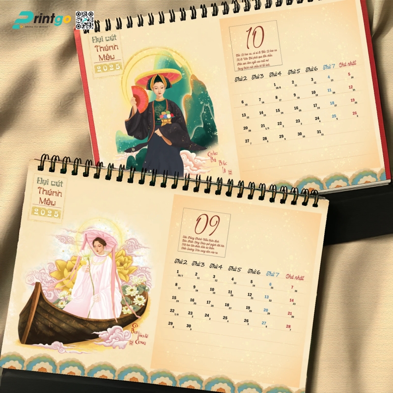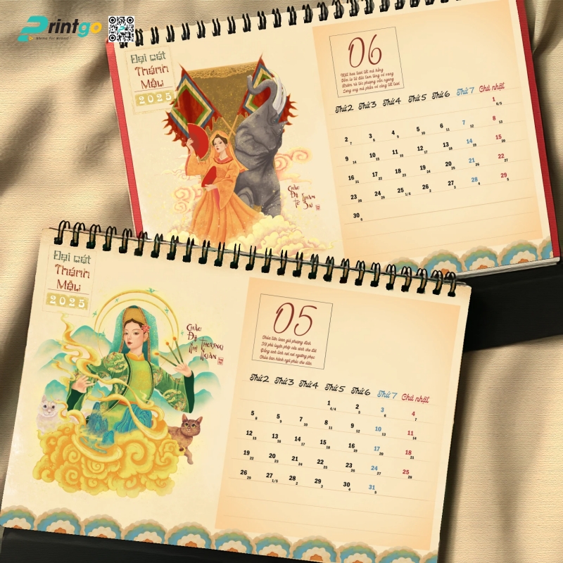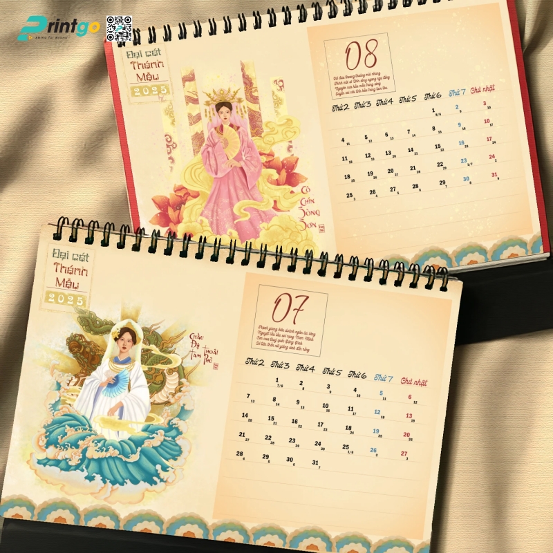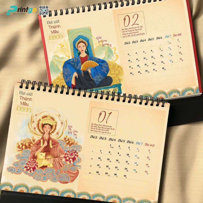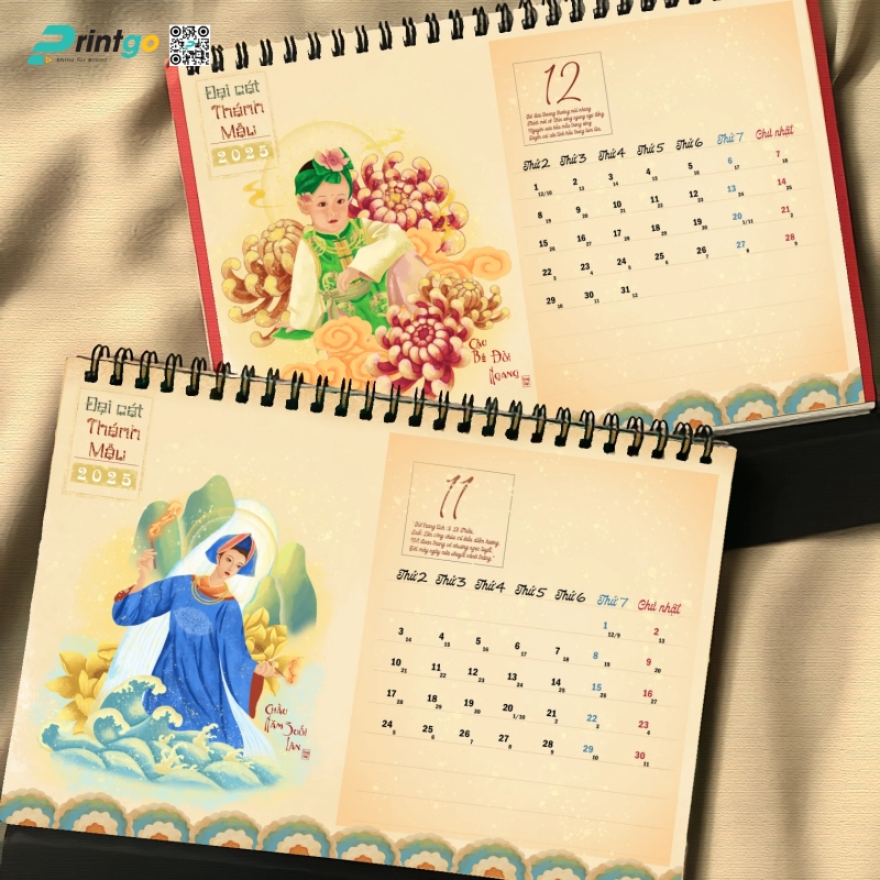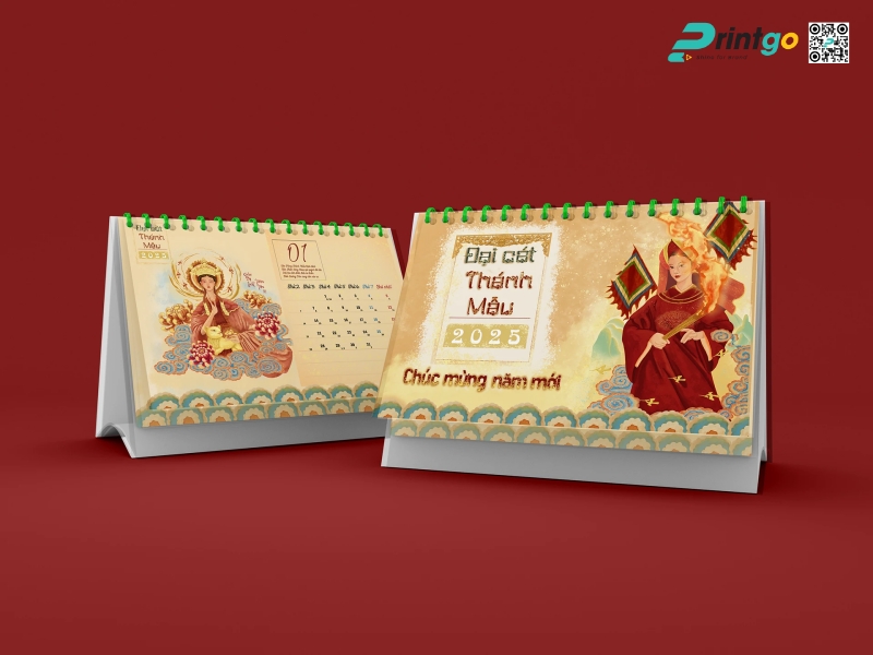 Mỗi độ Tết đến xuân về, doanh nghiệp lại khởi động mùa sáng tạo với những ấn phẩm chào năm mới mang ý nghĩa tri ân và cầu chúc may mắn. Trong số đó, lịch Tết luôn là lựa chọn được ưu ái bởi giá trị sử dụng cao và khả năng lan tỏa hình ảnh thương hiệu. Bộ lịch để bàn “Đại Cát Thánh Mẫu” Printgo giới thiệu chính là minh chứng cho sự kết hợp hài hòa giữa nghệ thuật tạo hình, văn hóa tâm linh và tinh thần doanh nghiệp đương đại.