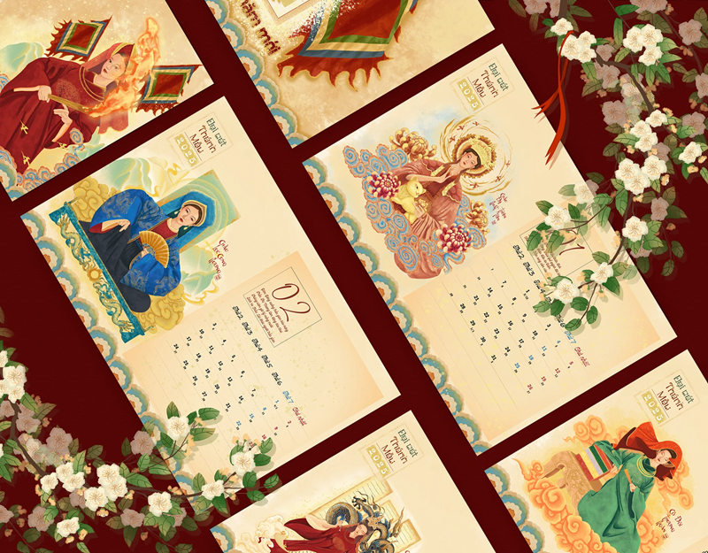Lấy cảm hứng từ tín ngưỡng Tứ Phủ, di sản văn hóa tâm linh độc đáo của người Việt, bộ lịch “Đại Cát Thánh Mẫu” là sự hòa quyện giữa nghệ thuật tạo hình và tinh thần tôn kính. Mỗi trang lịch được ví như một bức họa thiêng, tái hiện hình tượng các vị Thánh Mẫu trong dáng vẻ uy nghiêm, hiền từ và đầy năng lượng thiêng liêng biểu tượng cho lòng từ bi, phúc lộc và sự chở che.