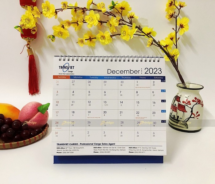 Năm hết tết đến, các doanh nghiệp cũng đang rục rịch chuẩn bị in ấn các sản phẩm chào xuân năm mới để dành tặng nhân viên, đối tác của công ty mình. Trong số đó, sản phẩm lịch tết rất được ưa chuộng và ngày càng xuất hiện nhiều mẫu mã lịch tết độc đáo. Ấn phẩm Transviet PG-LDB23-02 cũng là một mẫu lịch tết được dành nhiều sự đầu tư vào khâu thiết kế và in ấn để có được sản phẩm hoàn thiện nhất.