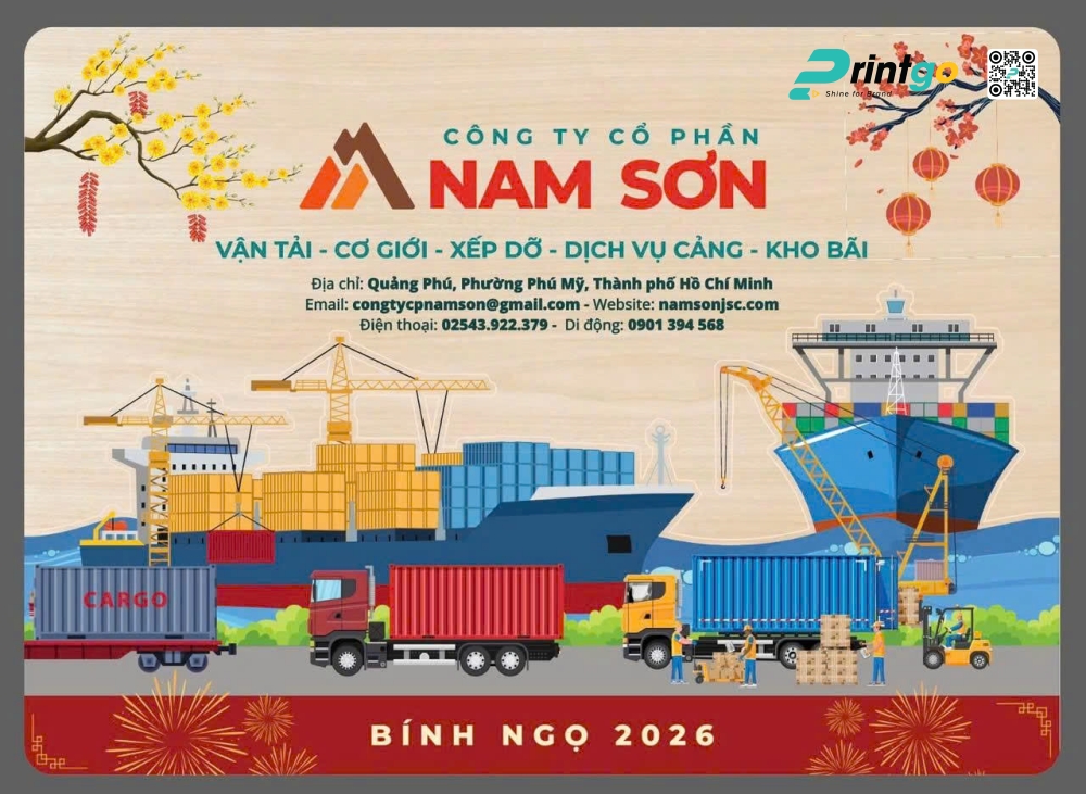Mỗi dịp Tết đến, nhu cầu tìm kiếm những mẫu lịch treo tường bền đẹp, mang ý nghĩa may mắn và thể hiện được bản sắc doanh nghiệp luôn tăng mạnh, đặc biệt trong các ngành đặc thù như vận tải - logistics. Đáp ứng xu hướng đó, Printgo phối hợp cùng Công ty Cổ phần Nam Sơn ra mắt mẫu lịch gỗ treo tường Nam Sơn 2026 tạo nên một ấn phẩm không chỉ hữu dụng mà còn là món quà Tết mang giá trị thương hiệu rõ nét dành tặng khách hàng và đối tác trong mùa xuân mới.