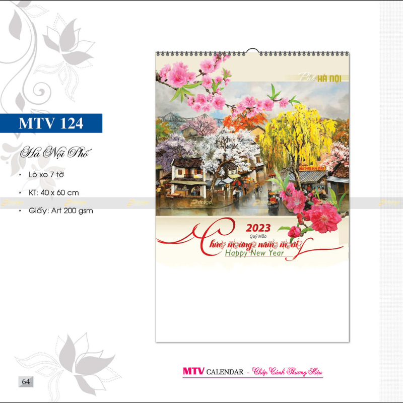 Mẫu lịch treo tường lò xo 7 tờ Hà Nội phố LTT-MTV23-124 thuộc đơn vị cung cấp lịch Mỹ Thuật Việt