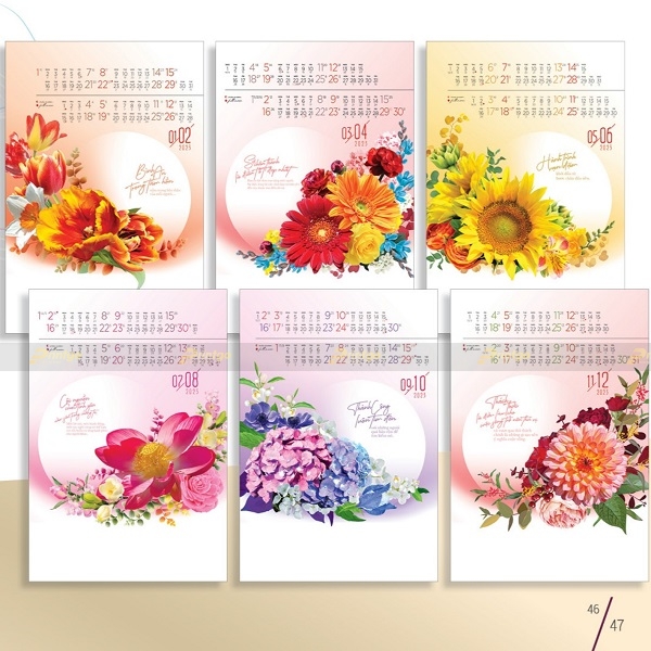 Ấn phẩm lịch treo tường Lung linh sắc hoa LTT-BS1023 ngập tràn sắc màu rực rỡ của mùa xuân sẽ là món quà tuyệt vời để trao tặng bạn bè, người thân, đối tác trong dịp năm mới 2023. Khám phá mẫu lịch LTT-BS1023 ngay sau đây.