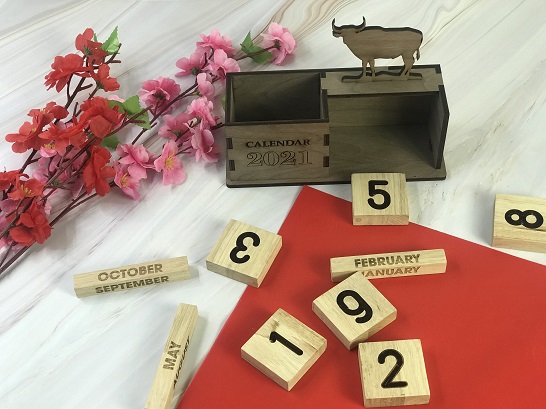 Mẫu lịch bàn đặc biệt LB-LG06 có thiết kế hoàn toàn bằng gỗ, mang đến sự sang trọng cho mẫu lịch. Tất cả thông tin ngày tháng, các họa tiết trang trí tinh xảo đều được khắc trực tiếp lên gỗ. Mẫu lịch hội tụ 3 yếu tố: “công năng, thẩm mỹ, độc đáo”, ngoài việc xem thời gian còn toát lên vẻ đẹp cho không gian nghệ thuật của mọi người.