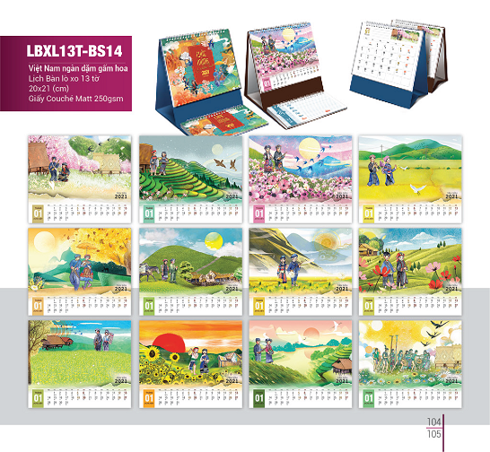 Lấy cảm hứng từ núi rừng cao Tây Bắc, bộ lịch để bàn lò xo Việt Nam ngàn dặm gấm hoa chính là sự lựa chọn phù hợp cho khách hàng vào dịp tết đến xuân về. Nếu quý khách có nhu cầu in lịch để bàn vào dịp Tết 2021, hãy cùng tham khảo mẫu lịch này nhé.