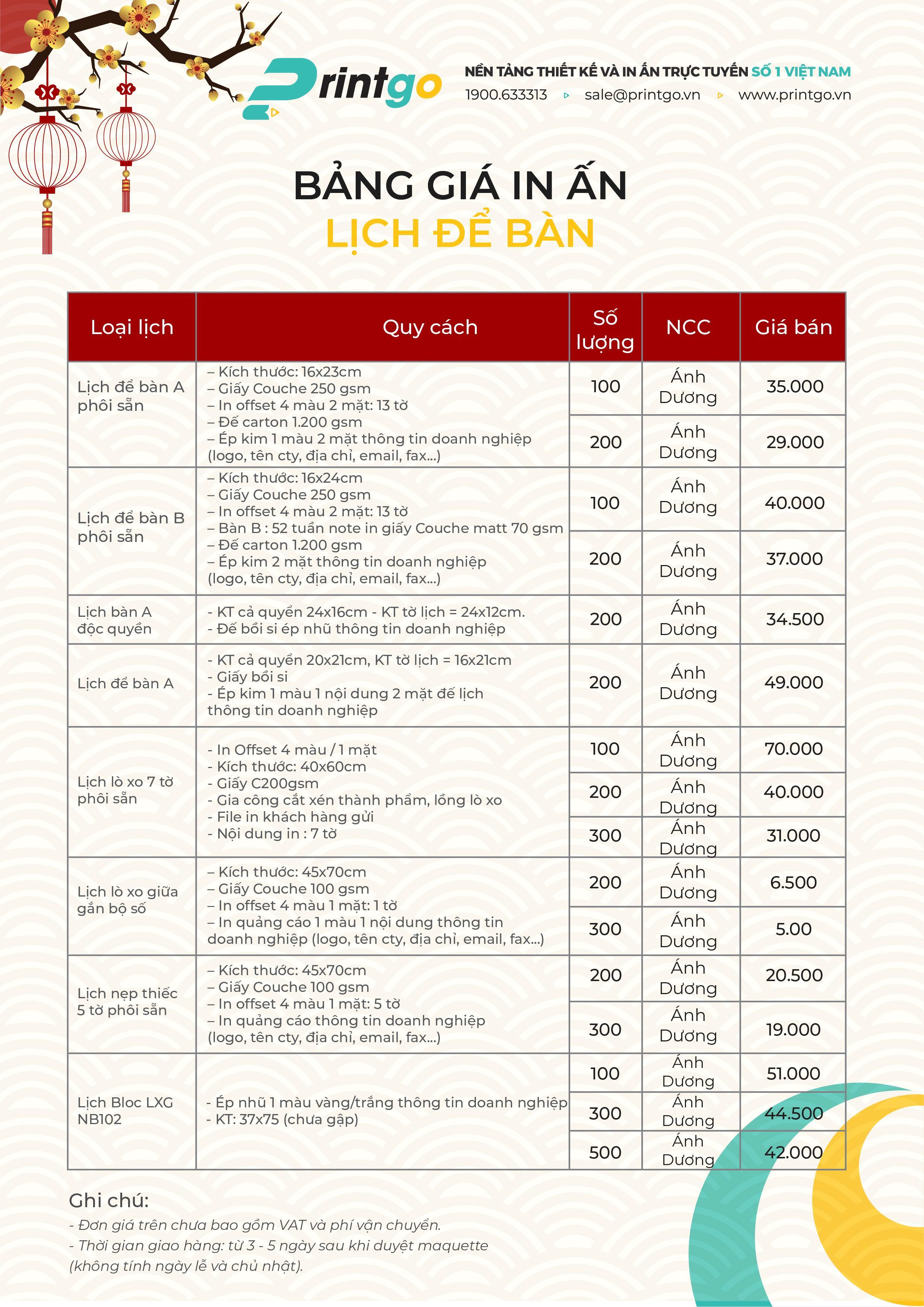 Khách hàng có thể in tối thiểu từ 100 quyển lịch trở lên và có hỗ trợ giao hàng tận nhà.