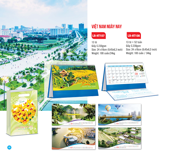 Vào thời điểm cuối năm, nhu cầu in ấn lịch Tết tăng nhanh với rất nhiều mẫu mã đa dạng. Thị trường chứng kiến sự cạnh tranh gay gắt đến từ rất nhiều cơ sở và xưởng in khác nhau. Câu hỏi đặt ra là phải làm thế nào để có thể chọn được một địa chỉ in ưng ý và đem lại sự hài lòng nhất. Lịch để bàn Hương Trang có thiết kế phong phú, chất lượng với rất nhiều chủ đề từ đơn giản, hiện đại đến cổ điển và thiên nhiên. Mẫu lịch để bàn chữ A LB-HT107 "Việt Nam ngày nay" sẽ là một sự lựa chọn lý tưởng mà Printgo muốn giới thiệu đến bạn.