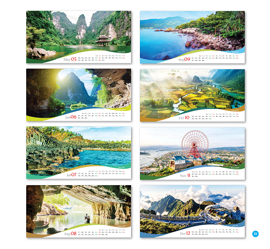 Hiện nay, Việt Nam là một trong những quốc gia đạt tốc độ tăng trưởng cao trên thế giới. Từ một quốc gia nghèo, nhỏ bé với cơ sở vật chất thô sơ, mảnh đất chữ S đã vươn mình mạnh mẽ và có sự phát triển vượt bậc. Thổi một làn gió mới vào cuộc sống hàng ngày với rất nhiều những công trình kiến trúc có thiết kế hiện đại và sang trọng bên cạnh những phong cảnh, kì quan thiên nhiên độc đáo và hấp dẫn. Lấy cảm hứng từ đó, bộ lịch LB-HT107 của công ty Hương Trang đã ra đời. Cuốn lịch là sự tổng hợp tất cả những nét đẹp và tự hào nhất của con người Việt Nam thông qua Vịnh Hạ Long, Động Phong Nha Kẻ Bàng, Hồ Gươm...