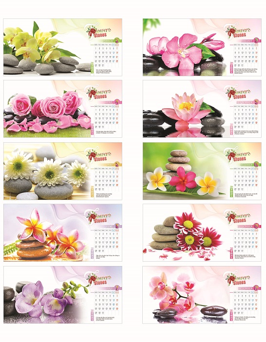 Hoa và đá, một mềm mại – một xù xì, một thăng hoa – một tĩnh lặng, một sự kết hợp giữa nét đẹp trong khoảnh khắc vẻ đẹp vĩnh cửu, một sự đối nghịch nhưng hài hòa. Từ đó tạo thành bức tranh cuộc sống sống động mà vẫn yên bình, nhẹ nhõm, thanh thản. Đó cũng chính là chủ đề của mẫu lịch để bàn “Hoa và đá” LB-AH85 được giới thiệu sau đây