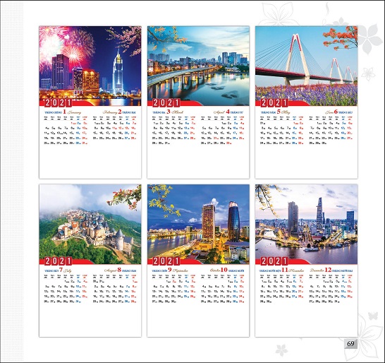 Mẫu lịch treo tường 7 “Việt Nam phồn vinh” TT-MTV124 là những bức tranh ghi lại những khoảnh khắc tươi đẹp của đất nước Việt Nam, ngợi ca sự phát triển nhanh chóng của quê hương trong thời kỳ hội nhập. Mẫu lịch gửi gắm khát vọng về đất nước Việt Nam phồn thịnh, cuộc sống con người ấm no, hạnh phúc. Đó cũng là lời chúc mà chúng tôi muốn gửi tới quý khách hàng nhân dịp đầu xuân năm mới.