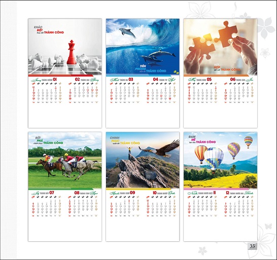 Trong cuộc sống và công việc, ai cũng có khát vọng thành công. Tuy nhiên, con đường đi đến thành công của mỗi người không giống nhau. Sẽ có người gặp được con đường bằng phẳng, nhưng có người sẽ phải đi những con đường gập ghềnh, nhiều chông gai, rào cản. Để giúp bạn đạt được những điều mong muốn, hãy cùng tham khảo một số bí quyết thành công trong cuộc sống và công việc thông qua mẫu lịch treo tường 7 tờ TT-MTV107 với chủ đề “Vươn tới thành công”.