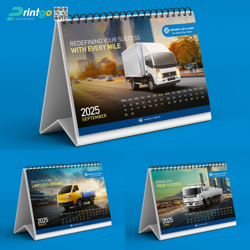 Trong ngành vận tải, mỗi hành trình không chỉ là sự di chuyển mà còn là biểu tượng của tốc độ, chính xác và uy tín – những giá trị cốt lõi làm nên bản sắc doanh nghiệp. Hiểu được tầm quan trọng này, việc thiết kế và in ấn lịch bàn độc quyền ngành vận tải là một hình thức truyền thông tinh tế, giúp thương hiệu thể hiện tinh thần chuyên nghiệp và tầm nhìn dài hạn. Lấy cảm hứng từ nhịp chuyển động liên tục của xe, tàu và những tuyến đường kết nối, Printgo tự hào mang đến giải pháp lịch bàn độc quyền mang tính thẩm mỹ cao, giúp doanh nghiệp tạo ấn tượng mạnh mẽ với khách hàng trong suốt năm mới.