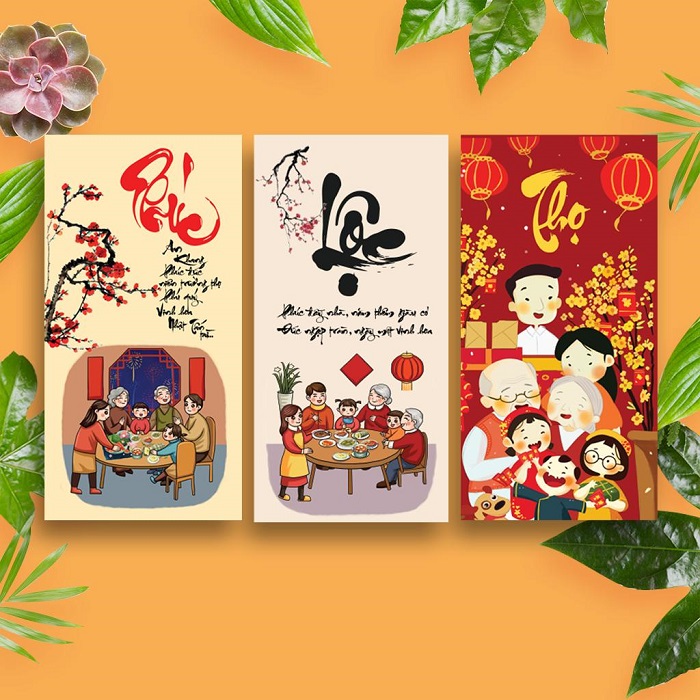 Sự có mặt của cả 3 chữ Phúc Lộc Thọ trong combo lì xì này chính là món quà Tết tuyệt vời nhất để dành tặng gia đình và bạn bè cho dịp Tết Nguyên Đán năm nay.