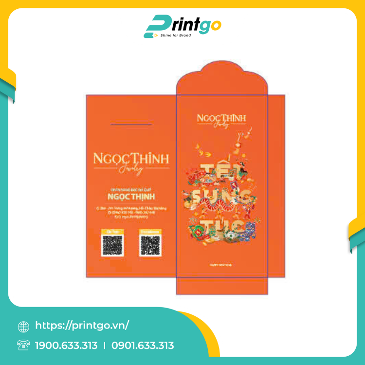 Mỗi khi Tết đến xuân về, dịch vụ in bao lì xì lại trở nên sôi động, thu hút sự quan tâm từ khách hàng cá nhân đến các doanh nghiệp. Những câu hỏi như "In bao lì xì ở đâu?", "Chọn loại giấy nào phù hợp?", "Thiết kế mẫu ra sao?" hay "Làm sao đặt hàng nhanh chóng?" luôn là mối bận tâm hàng đầu. Trong bài viết này, Printgo hân hạnh giới thiệu đến quý khách mẫu bao lì xì Ngọc Thịnh Jewelry PG-LXT25-11 – một sản phẩm độc đáo, được thiết kế tỉ mỉ và in ấn sắc nét, mang lại sự hài lòng tuyệt đối.