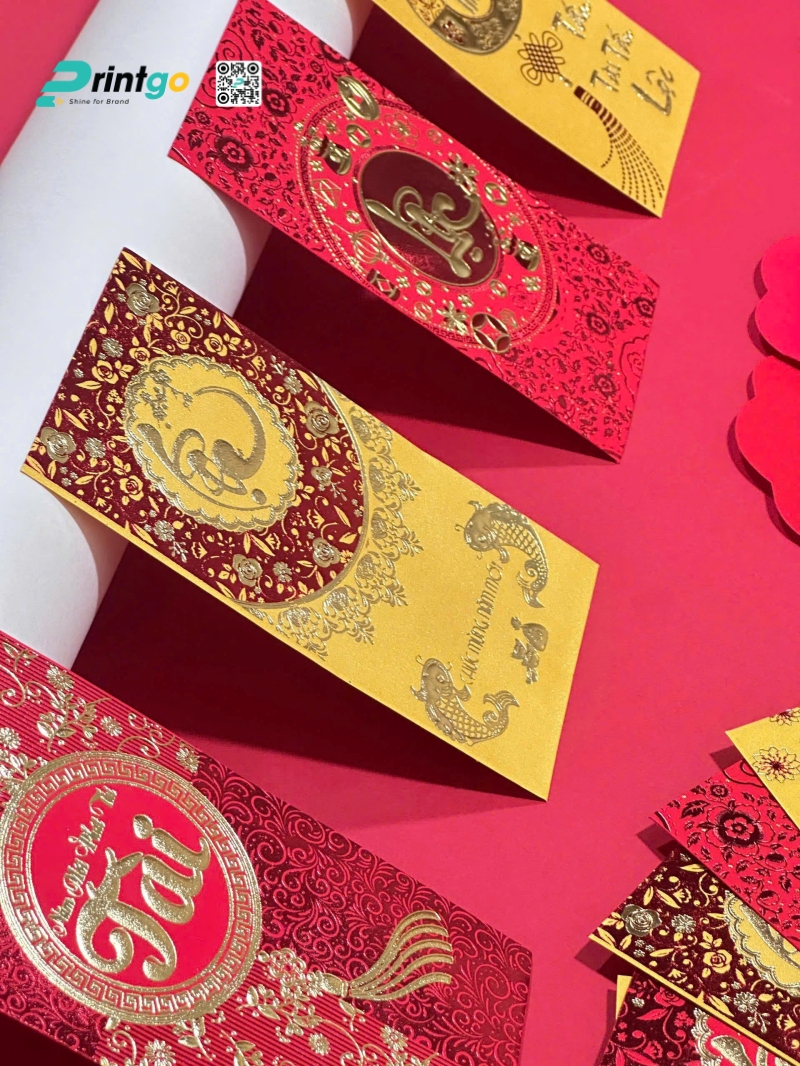 Trong những dịp Tết mang tính trang trọng, bao lì xì không chỉ là vật phẩm trao gửi tài lộc mà còn phản ánh mức độ chỉn chu và gu thẩm mỹ của người tặng. Mẫu in bao lì xì thúc nổi 3D sang trọng được Printgo phát triển theo định hướng cao cấp, tập trung vào hiệu ứng thị giác và cảm giác chạm, giúp từng chi tiết trở nên nổi bật ngay từ cái nhìn đầu tiên, đồng thời tạo nên giá trị khác biệt cho các chiến dịch quà Tết doanh nghiệp.