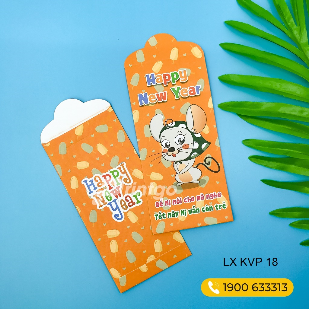 Mẫu lì xì LX KVP 18 sở hữu thiết kế với các hoa văn hiện đại làm cho sản phẩm trở nên rất sang trọng nhưng cũng không mất đi những nét truyền thống nhờ hình ảnh linh vật chú chuột vàng ở chính giữa. Tất cả các yếu tố kết hợp lại tạo nên một thiết kế rất hoàn hảo, sản phẩm chắc chắn sẽ giữ vị trí tốt trong thị trường lì xì tết Canh Tý sắp tới.