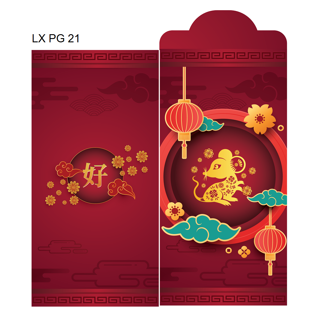 Mẫu lì xì LX PG 21 một thiết kế mà chỉ nhìn qua thôi đảm bảo khách hàng nào cũng muốn mua ngay rồi. Sản phẩm lấy tông màu chủ đạo là màu đỏ xẫm, cách bố trí và phối màu các họa tiết, hoa văn khiến bao lì xì trở nên rất nổi bật, điểm nhấn chính của nó nằm ở linh vật của năm 2020-chú chuột vàng trông rất sang trọng quanh những đám mây xanh và đèn lồng đỏ. Sản phẩm mà khách hàng nào nhìn cũng muốn sở hữu thì chắc chắn đây là mẫu lì xì mà các thương nhân không thể thiếu trong gian hàng của mình.