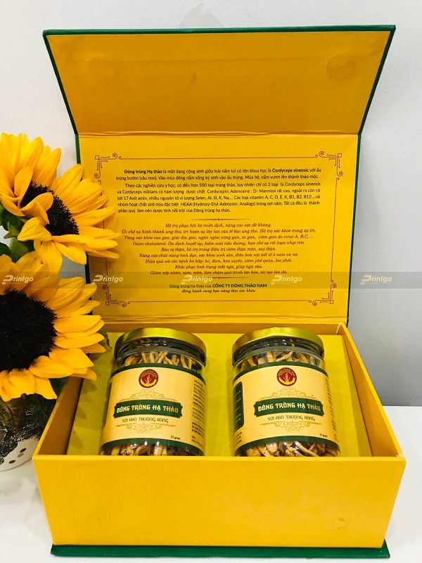 Từ nhiều năm nay, đông trùng hạ thảo đã nức danh trong giới y học cổ truyền, được người dùng truyền tai nhau với cái tên “thiên dược” bởi hàm lượng dinh dưỡng rất cao có trong cây trùng thảo. Nếu bạn đang có ý định kinh doanh đông trùng hạ thảo và cần tìm kiếm các loại hộp đựng đông trùng hạ thảo phù hợp, hãy để Printgo giúp bạn qua bài viết tổng hợp các mẫu lọ đựng đông trùng hạ thảo dưới đây.