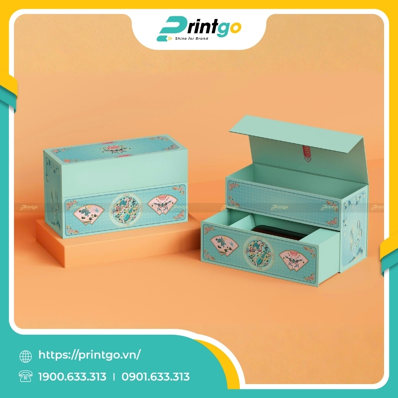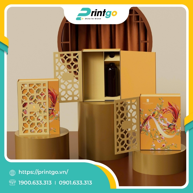 Khi đặt in tại xưởng in hộp quà Tết chuyên nghiệp như Printgo, doanh nghiệp sẽ được đội ngũ kỹ thuật tư vấn chi tiết về độ dày giấy, cấu trúc hộp và kiểu gia công phù hợp từng dòng sản phẩm.