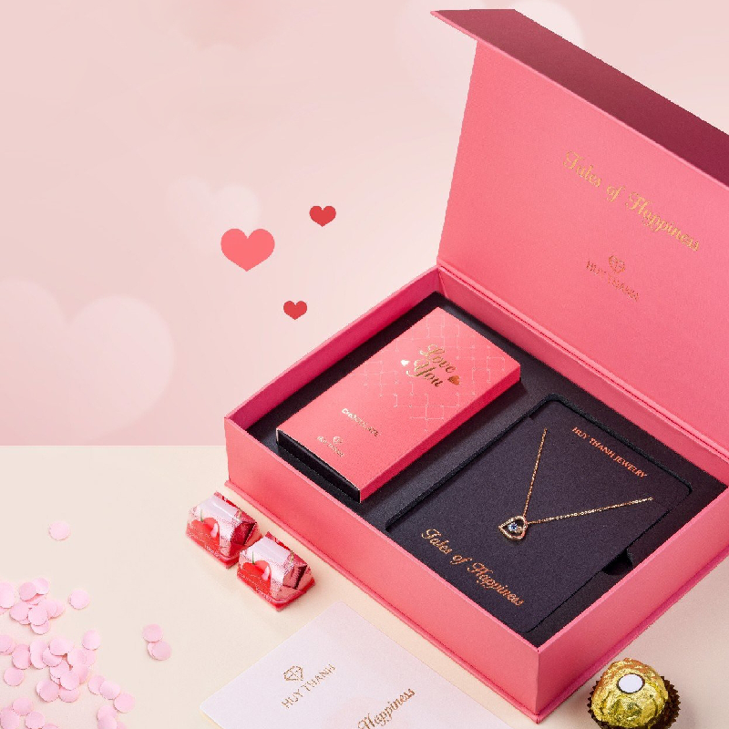 - Đa dạng thiết kế: Công nghệ in offset, ép kim, dập nổi hay phủ UV giúp tạo ra những mẫu hộp giấy đựng trang sức độc đáo, sang trọng.