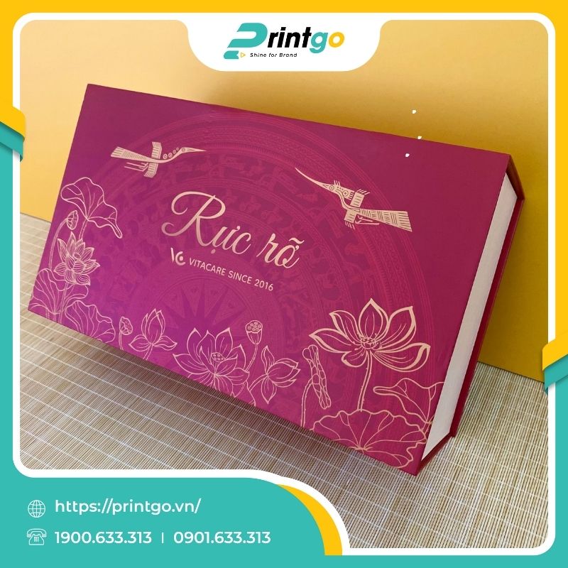 Printgo là công ty chuyên nhận in hộp giấy đựng quà trên toàn quốc, nhận làm hộp giấy theo yêu cầu với nhiều năm kinh nghiệm, cam kết đem lại cho khách hàng tại Hà Nội và các khu vực lân cận một dịch vụ in hộp giấy chất lượng cho khách hàng. Quý khách có thể tham khảo thêm các mẫu hộp giấy thực tế được chúng tôi gia công hoàn thiện tại đây