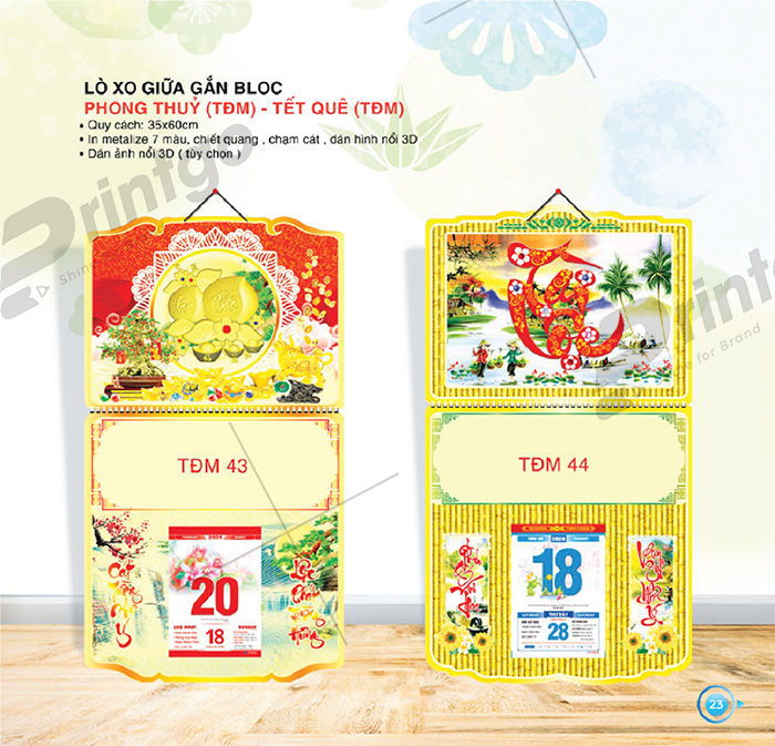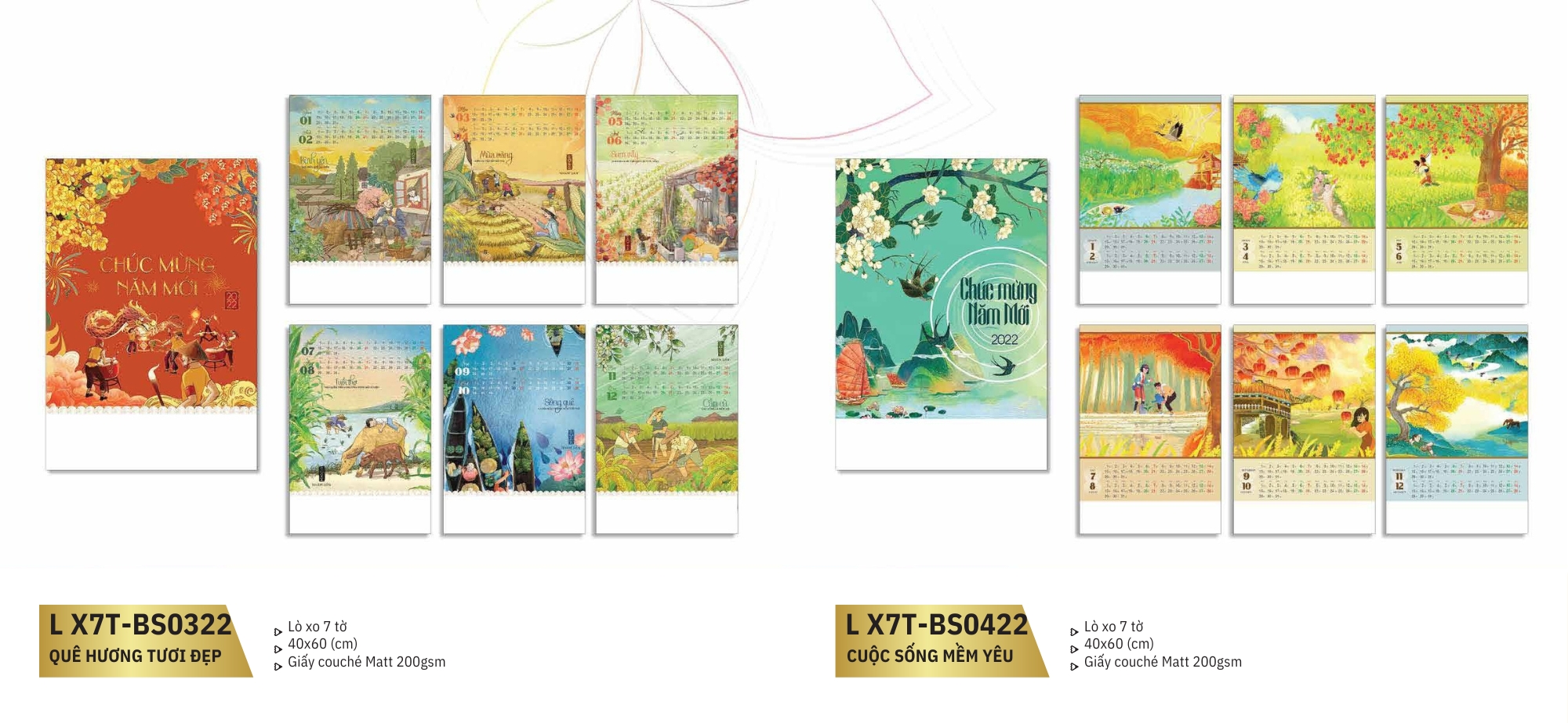 Lịch lò xo 7 tờ không chỉ là công cụ xem ngày, mà còn là món quà Tết độc đáo và sáng tạo. Khi in lịch treo tường 7 tờ, doanh nghiệp và cá nhân có thể chọn lựa nhiều chủ đề khác nhau, phù hợp với từng đối tượng khách hàng hoặc sở thích riêng. Dưới đây là một số chủ đề phổ biến của lịch 7 tờ: