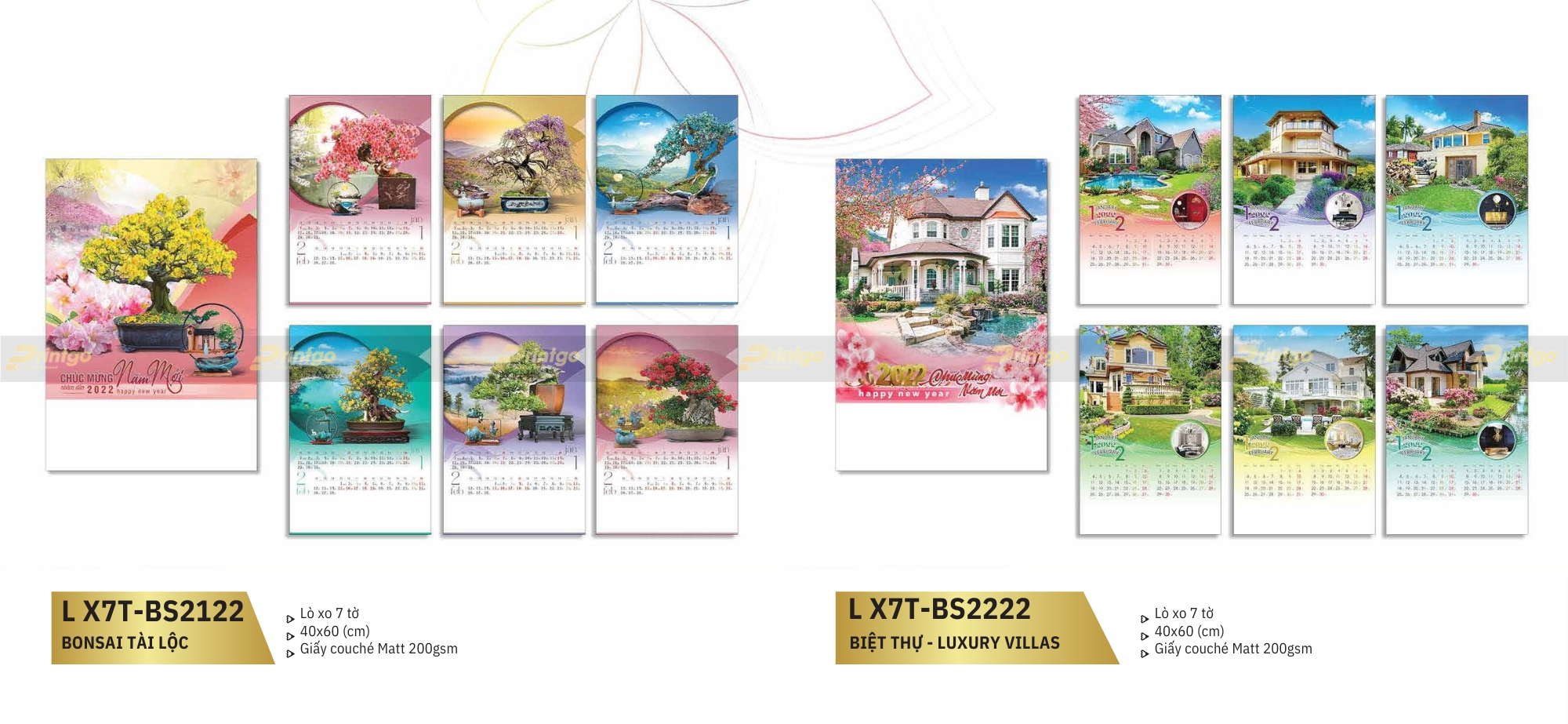 | Giá | Giá in lịch 7 tờ và giá lịch treo tường 7 tờ cao hơn, tùy theo kỹ thuật in | Giá lịch lò xo 5 tờ thấp hơn, phù hợp ngân sách nhỏ |