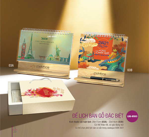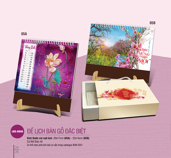Mẫu lịch được thiết kế đế lịch bàn gỗ đặc biệt
