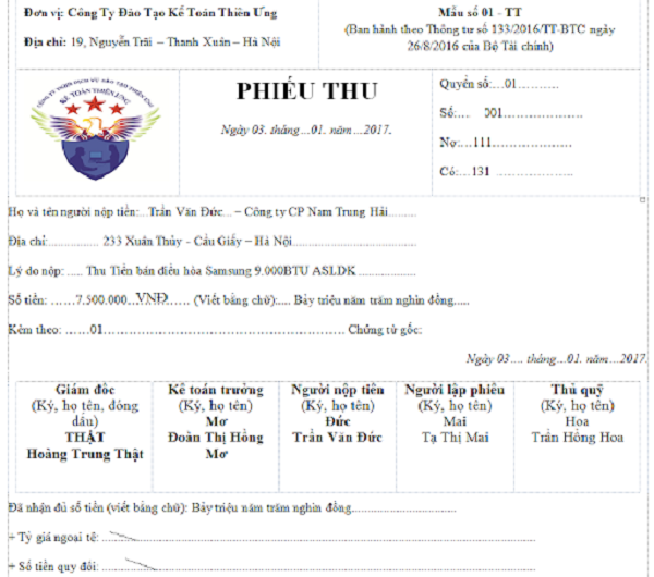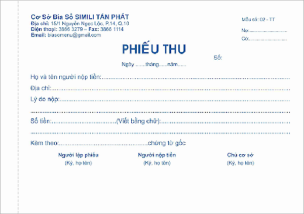 Một số mẫu phiếu thu được sử dụng phổ biến hiện nay
