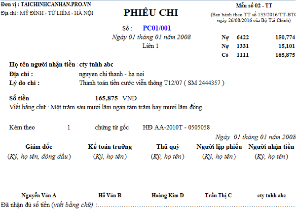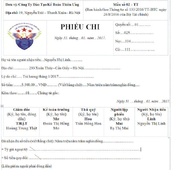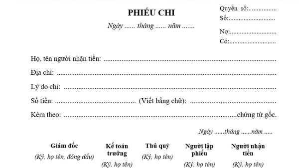 Một số mẫu phiếu chi được sử dụng phổ biến hiện nay