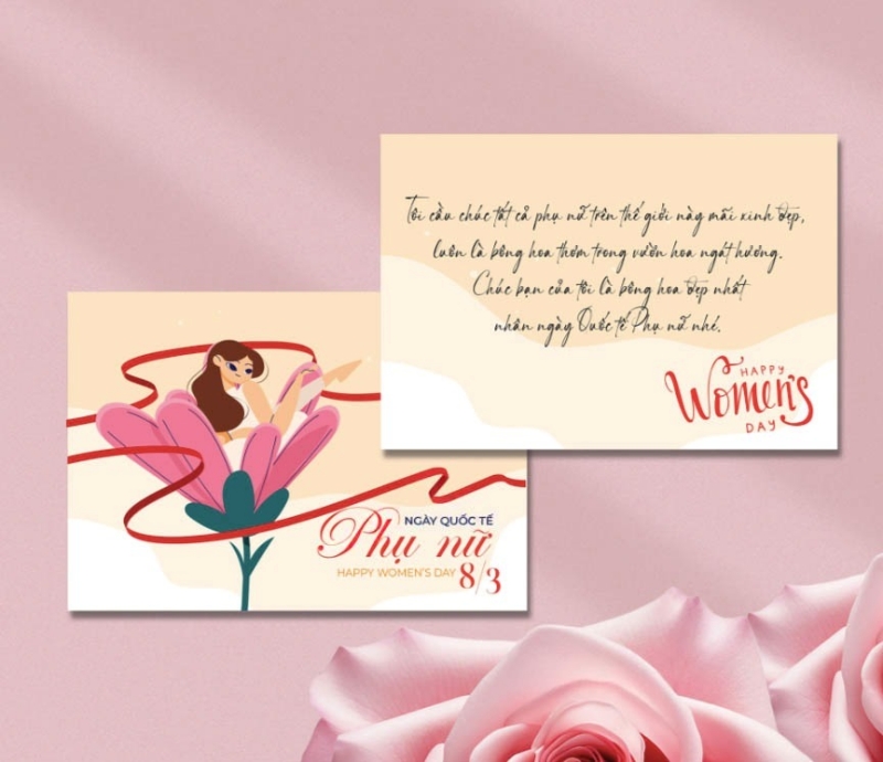 Thiệp 8/3 cho doanh nghiệp tri ân: Các mẫu thiệp 8/3 sáng tạo nhưng vẫn giữ sự trang nhã sẽ giúp doanh nghiệp truyền tải thông điệp tri ân rõ ràng, đồng thời tạo thiện cảm với người nhận.