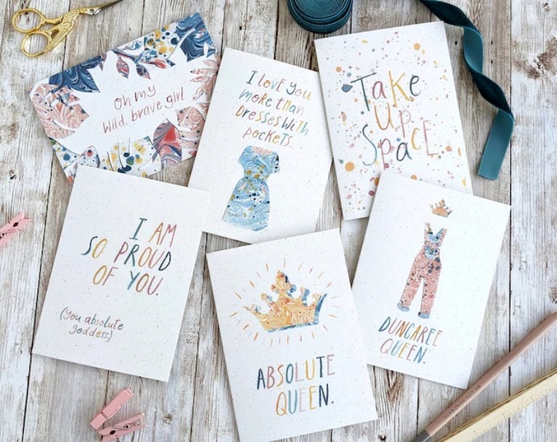 Giấy mỹ thuật: Đa dạng về bề mặt như gân, vân, ánh kim…, mang lại cảm giác tinh tế và khác biệt, thường được dùng cho các mẫu thiệp 8/3 đẹp nhất hoặc thiệp mang tính tri ân trang trọng.