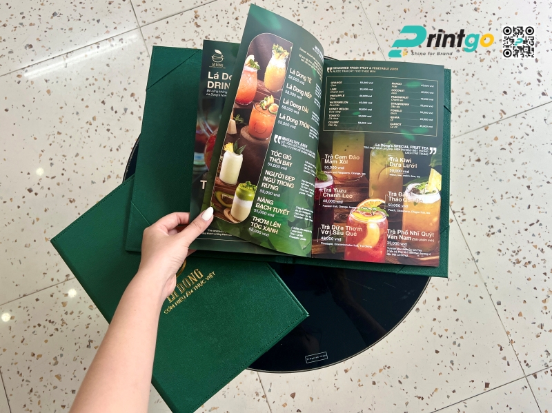 Khách hàng sẽ nhớ điều gì sau khi rời quán? Có thể là hương vị, không gian – và đôi khi, chính là ấn tượng từ một mẫu menu được thiết kế chỉn chu, tinh tế đến từng chi tiết. Với mong muốn đồng hành cùng các thương hiệu F&B xây dựng trải nghiệm trọn vẹn, Printgo giới thiệu mẫu in menu bìa da Lá Dong PG-MN25-01 – lựa chọn hoàn hảo cho những ai đề cao sự chuyên nghiệp và phong cách.
