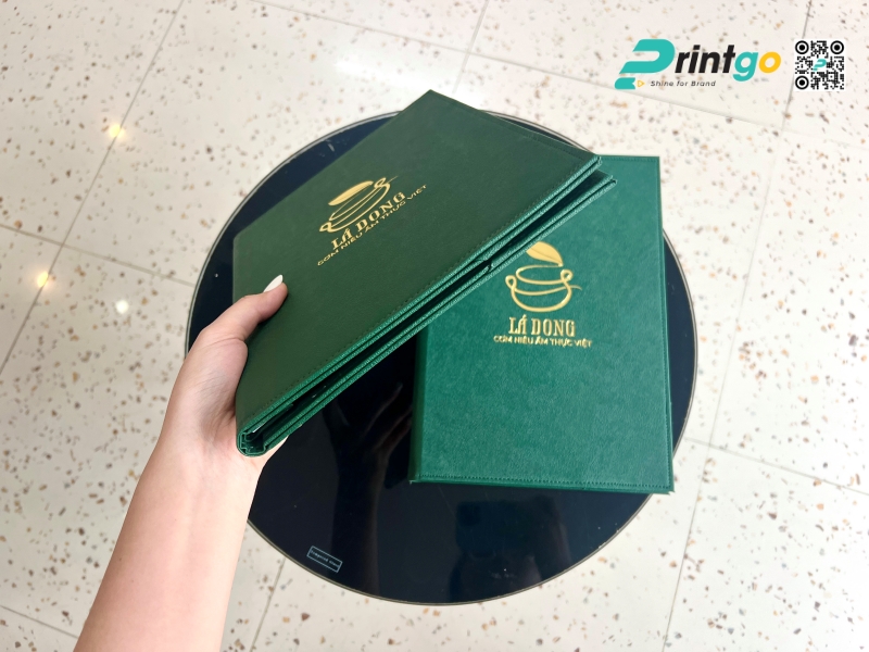 Menu được thiết kế theo khổ dọc thanh lịch, phù hợp với không gian bài trí của các nhà hàng mang phong cách truyền thống Việt. Bên cạnh kỹ thuật ép kim sắc sảo, Printgo còn chú trọng gia công tỉ mỉ, từng đường may đều chắc chắn và thẩm mỹ. Sự chỉn chu này không chỉ đảm bảo độ bền vượt trội mà còn nâng tầm giá trị thương hiệu thông qua từng chi tiết nhỏ.