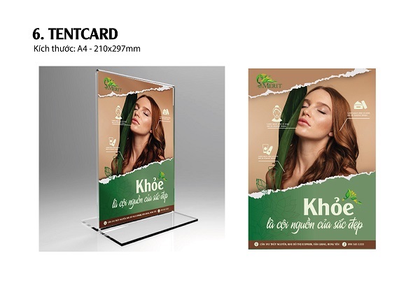 Tent card để trên bàn của Spa, để khách hàng có thể tham khảo thêm thông tin về Spa cũng như các chương trình khuyến mại