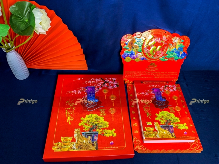 Phần áo lịch được sử dụng công nghệ in metalize, tạo ra hiệu ứng sáng lấp lánh và tăng cường độ màu, giữ được màu sắc tốt hơn trong suốt một năm sử dụng. Nhờ có công nghệ in này cuốn lịch tăng hiệu ứng trang trí, tính thẩm mỹ được khách hàng đánh giá cao hơn về sự chu đáo của công ty. Phần thông tin về Minh Tân Tiến được ép kim toàn bộ, tạo ấn tượng tốt với khách hàng. Ngay từ cái nhìn đầu tiên, khách hàng sẽ có thiện cảm hơn với món quà cũng như thương hiệu. Đây chính là sự chỉn chu trong hình ảnh, khách hàng khi cầm cuốn lịch trên tay sẽ cảm nhận được sự đầu tư và họ sẽ rất trân trọng món quà ấy.