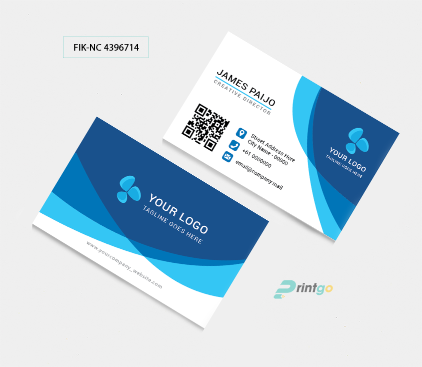 Mẫu Namecard FIK-NC-4396714 theo đuổi phong cách nhẹ nhàng bởi vậy mà nhà thiết kế đã lựa chọn 2 gam màu vừa phải nhưng cũng rất nổi bật đó chính là trắng và xanh. Ở mặt trước tên của công ty được in trên nền xanh nền nã. Thêm vào đó là sự phối màu tinh tế giữa các sắc xanh với độ đậm nhạt khác nhau cùng các đường nét mềm mại tạo cho tấm danh thiếp không còn cảm giác thô cứng. Còn mặt sau tên của chủ sở hữu, số điện thoại, địa chỉ hay email cùng mã QR - những thông tin được chắt lọc nhưng cũng rất đầy đủ và hiện đại.