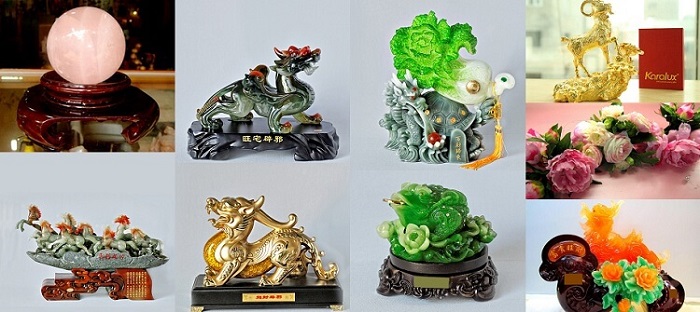 Những món quà phong thủy luôn toát lên vẻ ngoài sang trọng, đẳng cấp, rất thích hợp dành tặng cấp trên dịp Tết cổ truyền. Trên thị trường hiện nay có rất nhiều mẫu quà phong thủy với nhiều kiểu dáng và chất liệu khác nhau. Phổ biến nhất là các mẫu quà được làm bằng đá, gỗ, ngọc, hay thủy tinh. Tuy nhiên, cần lưu ý là những món quà phong thủy nên có sự tìm hiểu nhất định về ý nghĩa mà vật phong thủy đó tượng trưng. Tránh những sai sót tai hại khi món quà phong thủy đó lại không hợp tuổi hay khắc mệnh với sếp của bạn.