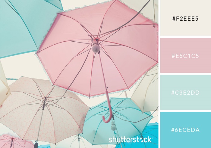 Đây đúng là một bảng màu quyến rũ và lôi cuốn. Sự kết hợp màu sắc này lấy cảm hứng từ bảng màu trang điểm và các phụ kiện thời trang cao cấp. Ghép một màu hồng phấn với một màu xanh pastel, và mở rộng bảng màu với các tông màu để tạo ra một sự sang trọng và hài hòa trên một bảng màu pastel.