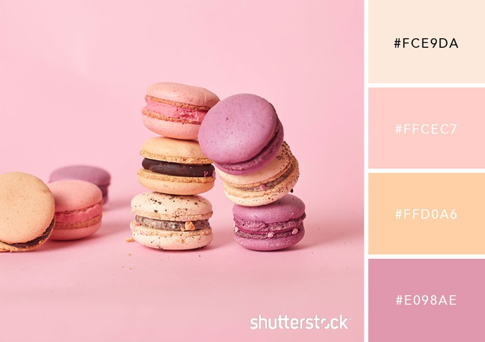 Những chiếc macarons tinh tế này cho thấy làm thế nào màu sắc pastel có thể đóng gói một cái bánh đẹp mắt đến vậy. Màu sắc ấm áp trong bảng màu này mô phỏng hoàng hôn và có thể được áp dụng cho một loạt các thiết kế riêng biệt.