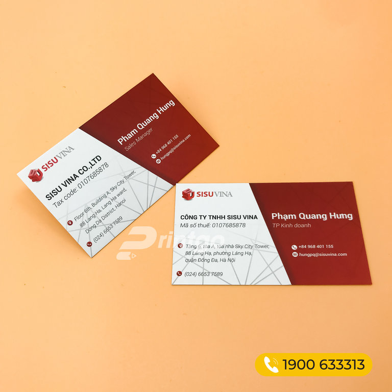 Một mẫu card visit C300 được cán mờ 2 mặt của khách hàng tại Printgo