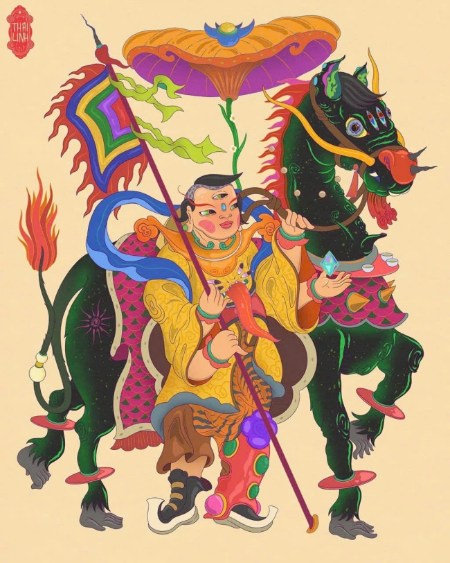 Không chỉ hiện diện trên chiến trường, ngựa còn là linh vật trong đời sống tâm linh người Việt. Trong các đình, đền, miếu thờ, tượng ngựa được đặt cạnh bàn thờ thần linh như sứ giả kết nối con người với cõi thiêng. Người xưa tin rằng ngựa mang linh khí, giúp chuyển tải lời cầu an, cầu phúc. Tranh dân gian Đông Hồ với hình “Mã đáo thành công” hay câu chúc đầu xuân đã khiến hình ảnh ngựa trở thành lời chúc may mắn, hanh thông trong năm mới.