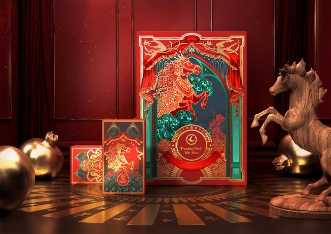 Tận dụng hình ảnh chiến mã trong thiết kế bao bì, túi giấy hoặc nhãn dán giúp tạo hiệu ứng đồng bộ và tăng nhận diện thương hiệu trong mùa Tết.
