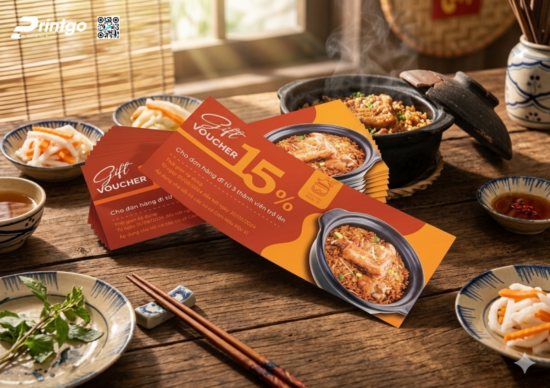 Trong ngành F&B, những chiếc voucher nhỏ gọn lại có thể tạo nên tác động lớn trong việc thu hút và giữ chân thực khách. Không chỉ đơn thuần là một tấm phiếu ưu đãi, voucher còn đóng vai trò như một công cụ truyền thông trực tiếp giúp thương hiệu truyền tải thông điệp khuyến mại rõ ràng và tạo ấn tượng chuyên nghiệp. Với dự án thiết kế và in voucher giảm giá Cơm Niêu Mộc Vị, Printgo đã mang đến giải pháp ấn phẩm thẩm mỹ, giúp thương hiệu lan tỏa chương trình ưu đãi hiệu quả và gia tăng trải nghiệm tích cực cho khách hàng.