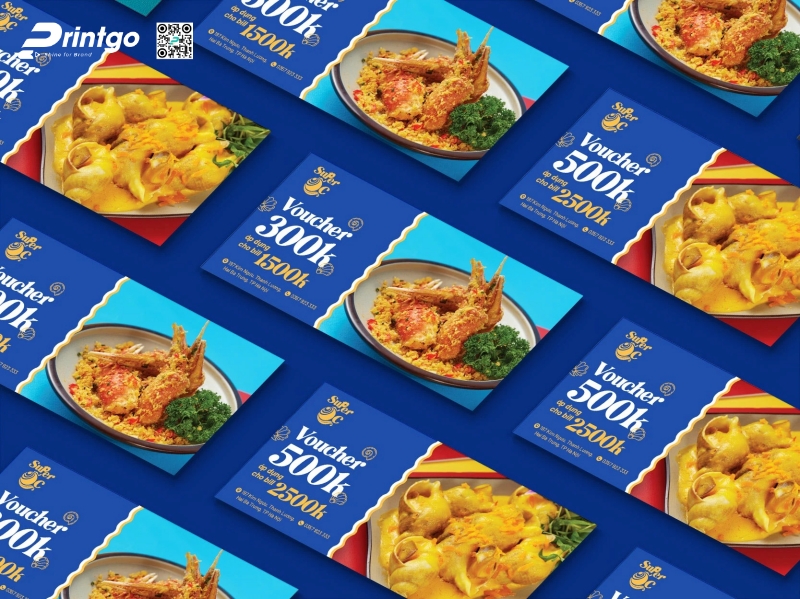 Nếu bạn đang tìm kiếm một giải pháp thiết kế và in phiếu quà tặng chuyên nghiệp cho nhà hàng, quán ăn hoặc thương hiệu F&B, Printgo là đơn vị đồng hành đáng tin cậy. Với đội ngũ thiết kế giàu kinh nghiệm cùng hệ thống xưởng in hiện đại, Printgo mang đến những mẫu voucher được đầu tư chỉn chu từ ý tưởng đến chất lượng in ấn. Mỗi sản phẩm không chỉ đảm bảo tính thẩm mỹ mà còn giúp doanh nghiệp truyền tải chương trình ưu đãi một cách hiệu quả và chuyên nghiệp. Đây cũng là cách để thương hiệu tạo dấu ấn riêng và gia tăng trải nghiệm cho khách hàng trong từng chiến dịch khuyến mãi.